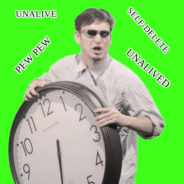 - …insisting that grown adults use childish language like, “self-deletion,” or “self-unaliving,” when discussing serious social and personal issues like suicide.